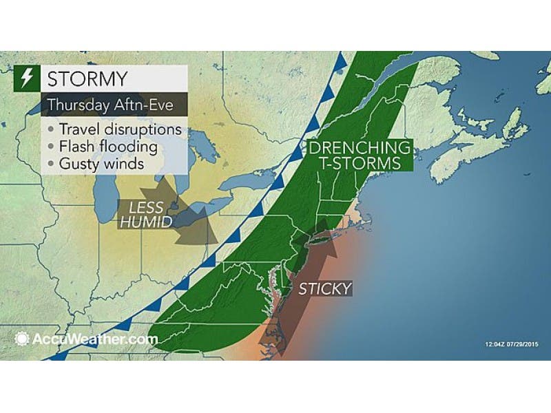The chance for severe weather is around 60 percent, according to the weather service. It also will remain hot and humid as temps approach the upper 80s on Thursday.