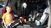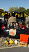 O'Brien's trunkscape featured a skeleton rising out of the dirt from a grave centered in the back of her SUV. The skeleton's hand gripped a hair-raising mouse and crows pecked pieces of skeleton embedded in the dirt. This scene was surrounded by faux spiderwebs, ghosts, other skeleton parts and a giant black spider with red eyes in the top left corner. To complete her four-dimensional trunk-or-treat entry, O'Brien played a soundtrack of scary noises and screams in the background; she took the time to create a short audio track that played in a loop. Her design won first prize among the kids who voted at the event.