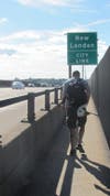 To start the second half of our leg we needed to cross the Gold Star Memorial Bridge. This would be the first time crossing the bridge by foot for all three of us. At over a mile long and over 100 feet above the water this isn't for the faint of heart. I enjoyed the experience, taking my time, looking north up the Thames River.