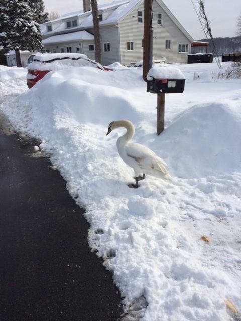 Robert Yuchniuk, the Waterford-East Lyme Animal Control officer, picked up a swan on Monday, March 2, after he crashed into power lines and sustained injuries.