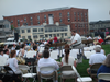 Last Tuesday, on July 9, the Waterford Community Band performed one of their summer concerts aside the Mystic River in Downtown Mystic. Their previous concert was cancelled due to stormy weather, and this concert was about to be cancelled as well, but fortunately the rain held for the evening so the citizens of Mystic could enjoy some of the band's music.