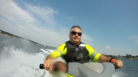 The department posted a video on its Facebook page showing one of the officers using a wave runner to make his rounds.