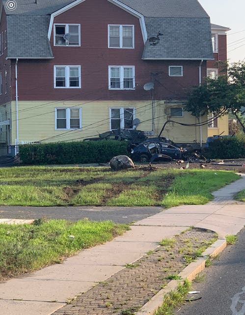 WEST HARTFORD, CT — A fiery, two-car crash during a police pursuit left one vehicle against a home and the other in some bushes and a section of New Park Avenue closed in West Hartford Tuesday morning.