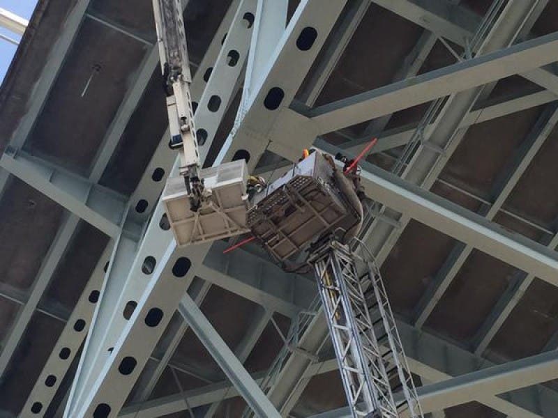 On Tuesday, crews from McClain & Co. were trapped in the bucket of a truck on Interstate 95 while inspecting the Gold Star Bridge in Groton. No one was injured, and the members were rescued.