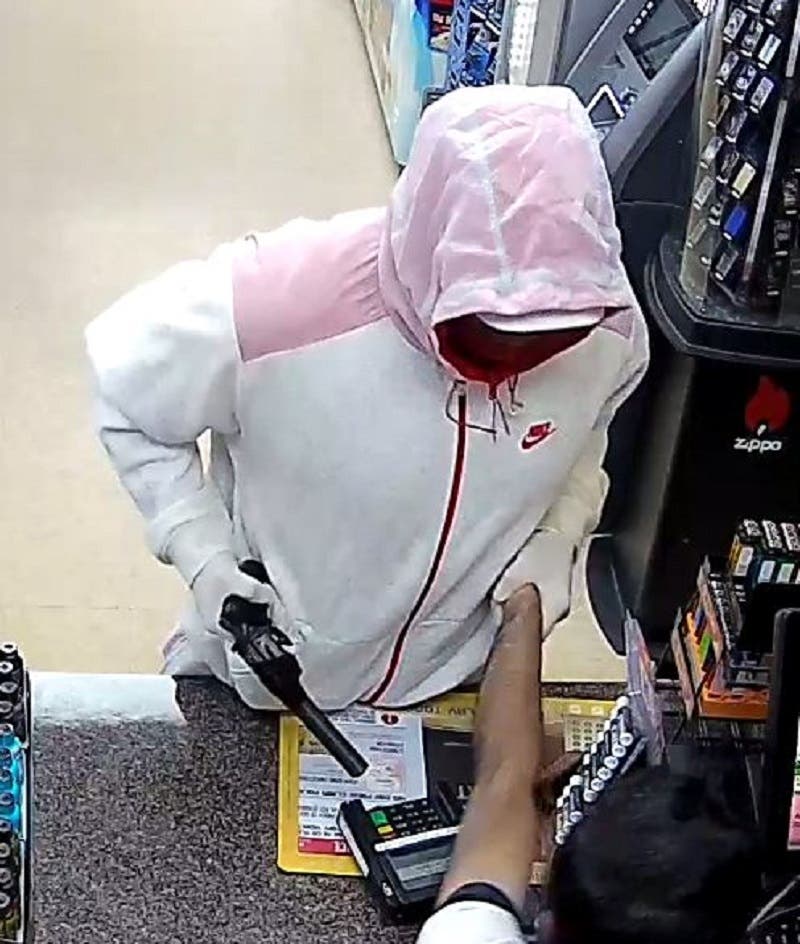 Police say the suspect is believed to be a man of average height with a husky build. In all three incidents the suspect brandished a black handgun and demanded money from the clerk.
