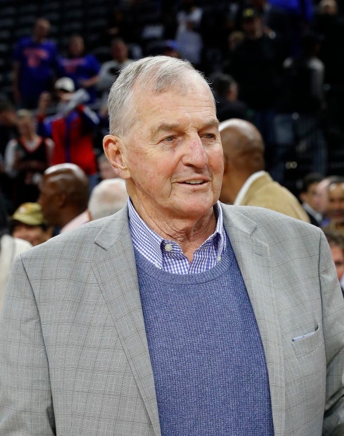 Pictured: Former University of Connecticut basketball coach Jim Calhoun talks after an NBA basketball game between the Detroit Pistons and Boston Celtics in Auburn Hills, Mich. in February. (Paul Sancya / Associated Press)