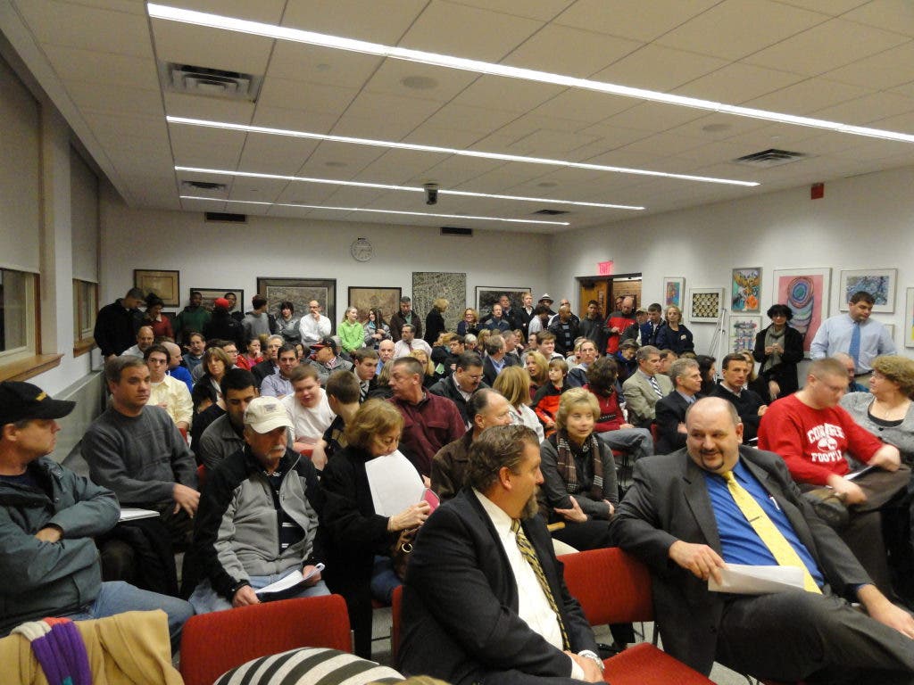 A standing-room-only crowd of well over 100 people packed the Town Council chambers for Monday night's public hearing which lasted well over four hours. Most were there to express strong support for the lights.