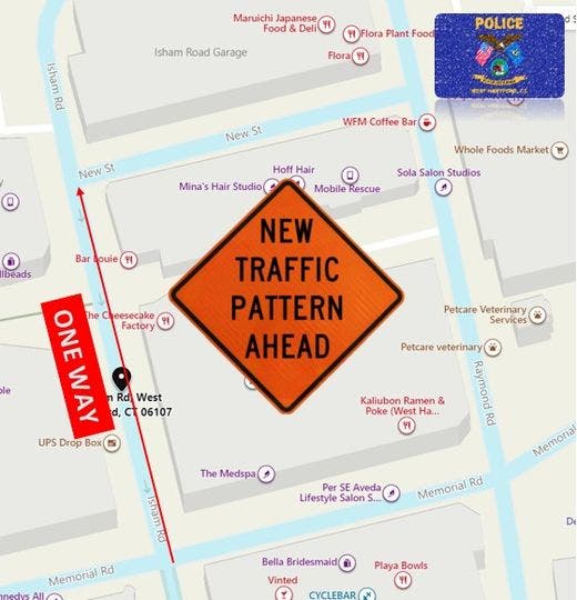 A road in West Hartford has a new traffic pattern, police announced.