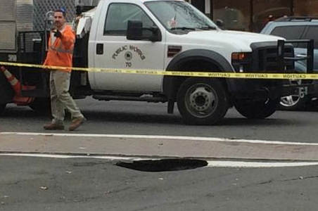 By the end of the day, the MDC will repair the pipe, fill the hole, and patch the pavement. Final repairs will be made in the Spring 2015.
