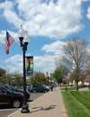 Banners showcasing artwork created by West Hartford students are on display, transforming South Main Street into an art gallery.