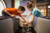The museum’s latest exhibit features several interactive activity stations that allow visitors to solve real-world problems that engineers face each day.