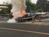 WEST HARTFORD, CT — Firefighters extinguished a truck fire on North Main Street in West Hartford on Wednesday morning. Pictured are members of Quint 4 working to extinguish the fire, according to the Professional Fire Fighters of West Hartford-IAFF Local 1241 on Facebook.