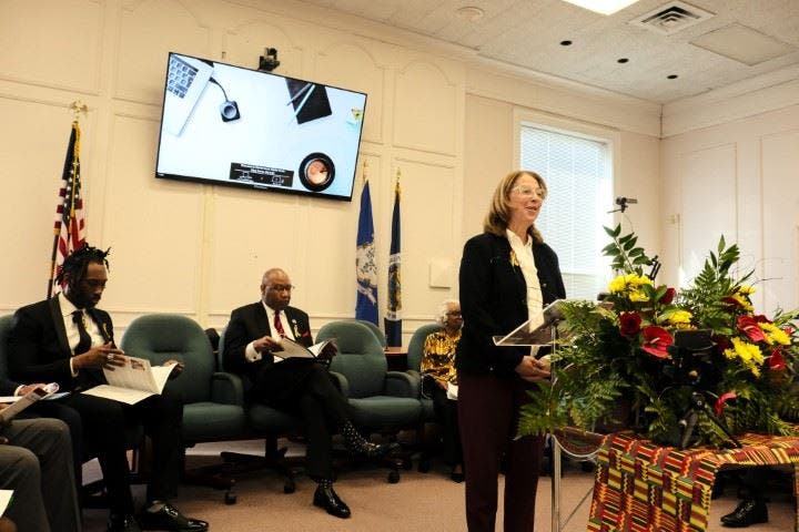 West Haven Mayor Dorinda Borer delivers remarks honoring the city’s Black Heritage Celebration. (City Photo/Lindsay Katz)