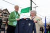Pictured: Photo 1: (Presentation of the Irish flag) — Liam Buckheit, 6, helps Mayor Nancy R. Rossi present an Irish flag to his great-grandmother, Joan D. Connor. (City Photo/Michael P. Walsh)