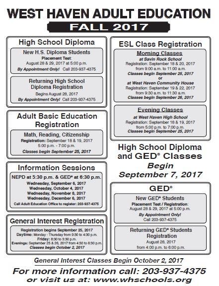 West Haven Adult Education Fall Registration