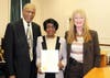 Photo 1: West Haven High School seniors Bobbie James and Kobe Brantley, holding certificates, are presented with Black Heritage Committee awards for outstanding leadership from Program Chairman Steven R. Mullins, center, as Superintendent of Schools Neil C. Cavallaro and Rossi look on. (City Photo/Michael P. Walsh)