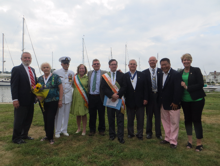 Pictured left to right: Bob Fox of Westport (Secretary Fairfield County AOH); Kay Egan (Danbury AOH and wife of the late Thomas Egan who lobbied congress successfully for Barry’s recognition); Master Chief Iannucci (USN retired and Commander Port 5 Naval Veterans in Bridgeport); James Murray of Weston (President Fairfield County AOH); Thomas McDonough, Esq. of Waterbury (President of CT AOH); Thomas Keane of Fairfield (President AOH JFK Div. #1 of Bridgeport); Ted Lovely of Trumbull (VP CT AOH and USN retired); State Senator Tony Hwang (28th District); State Representative Laura Devlin of Fairfield (CT State Representative of Fairfield / Trumbull).