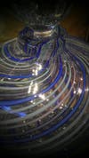 The exhibition includes a series of functional vases and drinking glasses as well as pieces representing a study in cane coloring, which is when color is used in linear patterns. The inspiration for cane coloring came when Curtis observed another glass blower working with a large mass of glass that he quickly pulled into very long strands of glass called the cane. “This experience allowed me to discover the fiber-optic quality of glass and gave me the ability to use glass in a linear, color function.”