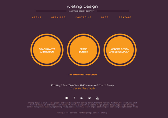 Cindy Wieting is principal and creative director of Wieting Design, a full service graphic design firm based in Fairfield County CT. We specialize in graphic design, website design, branding, and search engine optimization (SEO). Wieting Design will take your project from concept to completion. Cindy has 20 years’ experience working with some of the top creative firms, handling such brands as M&M® Mars, Unilever®, Stoli® and Firestone®. She started her company in the 90’s working with small business owners and has continued growing. She loves what she does and truly enjoys helping her clients grow their businesses. As designer and creative director Cindy leads a team of top professionals that deliver the best concept, design, programming solutions, and service with a single point of contact. We will design and develop your website, create your brand identity, set up your social media marketing and create your marketing collateral with the right creative platform for your business needs.