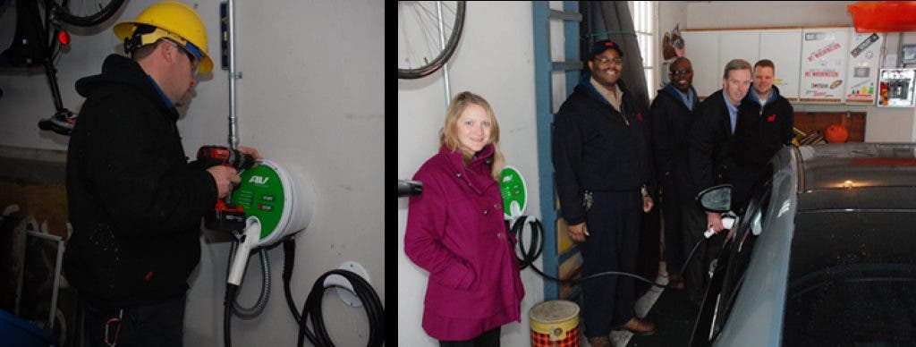 The company's first residential electric vehicle charging station is installed at an Easton residence.
