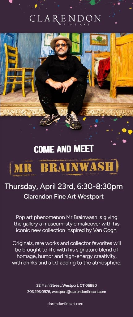 WESTPORT, CT — Clarendon Fine Art in Westport will present a new exhibition beginning Thursday by Mr Brainwash titled Homage to Van Gogh, the gallery announced.