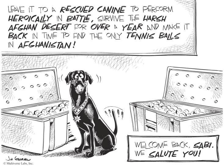 Bomb-Sniffing Dog's Return Celebrated in Cartoon