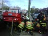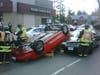 Emergency personnel responded to the crash at Post Road East and Compo Road South at 4:33. They found a Chevy Cavalier on its roof and leaning on a Saab station wagon, with the driver of the Cavalier hanging upside down by the vehicles seatbelt, police said. Firefighters worked to stabilize the vehicle, and remove the occupant onto a backboard and stretcher for transport by Westport EMS to Norwalk Hospital with minor injures.