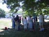 Irene McCutchen was one of those who stepped forward to plant a flag in the grass as the name of a recently deceased American fighter was read by West. With an upswing of her arm, Nancy Pool signalled to the volunteers in the belfry — Bill Meyers and David Pool — to strike the church bell again.