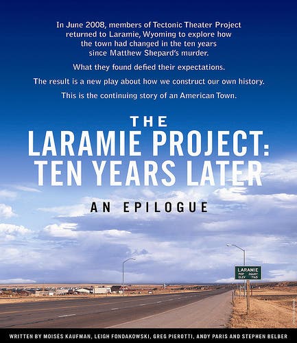 The play, a sequel to "The Laramie Project," is by Moisés Kaufman, Leigh Fondakowski, Greg Pierotti, Andy Paris and Stephen Belber.