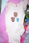 Photo 1: From left, Westport Police Detective George Taylor, Westport Police Lt. Eric Woods, Westport Fire Fighter Christopher Carroll, Mother Kate Procaccini, Baby Mila Joy Procaccini, Father John Procaccini, Westport EMS Crew Chief Mark Blake, Norwalk Hospital Paramedic John Chapdelaine, Westport Police Officer David Perez and Westport Fire Fighter Justin Harelik; Photo 2: Kate, John and Baby Mila; Photo 3: the gift from Westport emergency personnel. Photo credit: Westport Fire Department