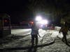 Adjacent house suffers no damage but connected barn structure is left charred.