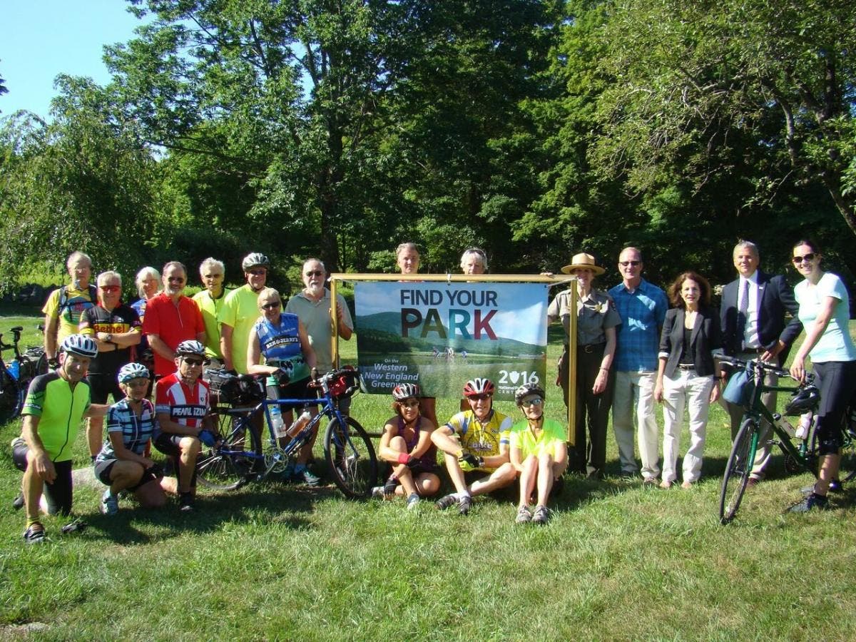 On Saturday, July 23, 2016, Connecticut’s only National Historic Site, Weir Farm National Historic Site in Wilton, hosted the kick-off of the “Heritage Ride 2016” Bikeway Tour that will end Sunday, July 31st in Montreal, Canada. The eight-day tour will take dozens of volunteer cyclists through towns and rural back roads across western Connecticut, Massachusetts and Vermont. The awareness-building tour will highlight the scenic and historic attractions along the Western New England Greenway – a nationally-recognized “U.S. Bicycle Route” by AASHTO-American Association of State Highway and Transportation Officials.