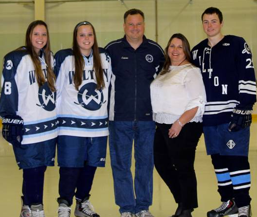 The Cravens’ oldest son, David, 18, is a senior at Wilton High School and has played travel hockey since he was six years old, in addition to being a part of WHS varsity hockey since he was a freshman under Coach Brett Amero. The Cravens’ daughters, identical twins, Amanda and Elizabeth, are juniors at WHS and began playing hockey just four years ago, three of these years skating varsity for WHS.