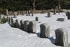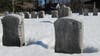 Like a winter watchman, a snowdrift blocks Bald Hill Cemetery's small paved road. Until it melts, this historic Wilton cemetery appears to slumber. Indeed a winter such as this one can take its toll on the marble and sandstone markers.