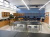 The Science wing has been completely redone, now with nine classrooms (one 1,100 sq. ft., three 900 sq. ft., and five 1,200 sq. ft.). Among their many new features, the classrooms are equipped with storage spaces that double as whiteboards (many did not have whiteboards previously), overhead projectors, flatscreen TVs, movable work tables, dedicated lecture areas, and even ceiling-based retractable convenience outlets, which eliminate the need for dangerous serpentine extension cords and provide power wherever it is needed.