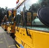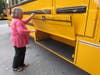 Schools' transportation coordinator Mary Channing shows off the district's fleet of brand new vehicles, built-to-order in time for the start of the new school year—and to bring greater efficiency, safety and savings for the town.