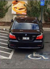 The representative's BMW was photographed in a handicap parking space at a Dunkin' Donuts.