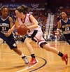 E.O. Smith's Maggie Sundberg scored 16 points in her final high school basketball Saturday. The game was played in an arena where professionals play before a crowd larger than any she had played in front of before. The only problem was the final score.
