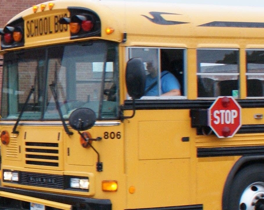 A Honda Civic traveling northbound on Blue Hills Avenue crossed the center line and struck the bus, which was carrying 13 middle school students, around 1:22 p.m.