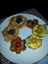 --Add a halved cherry red tomato in the center of 2 of the French toast flowers and a blueberry in the center of the other 2 French toast flowers.