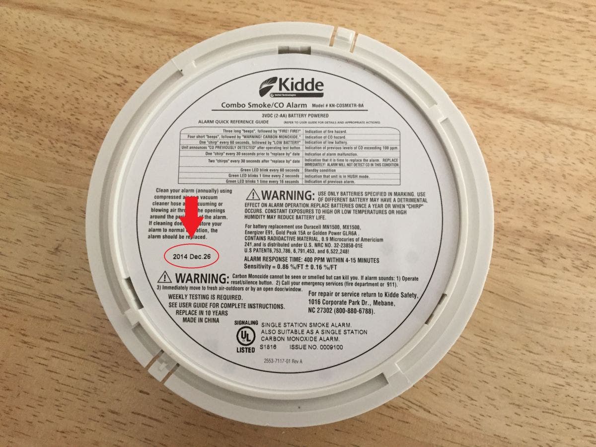 To find out how old a smoke alarm is and its expiration date, simply look on the back of the alarm where the date of manufacture is marked. The smoke alarm should be replaced 10 years from that date (not the date of purchase). The Windsor Volunteer Fire Department also says smoke alarms should be tested monthly, and that batteries should be replaced once a year or when they begin to chirp, signaling that they’re running low.