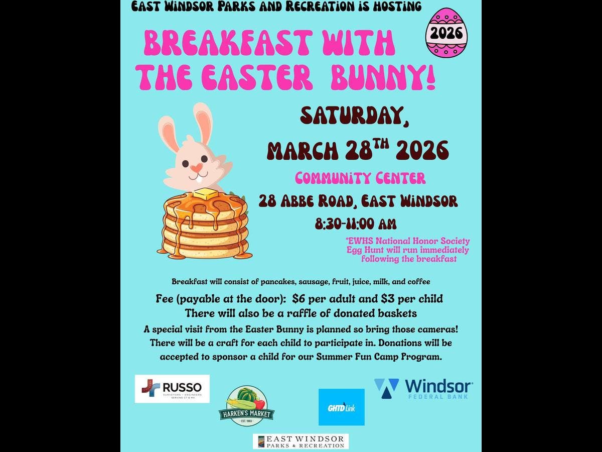 EAST WINDSOR, CT — East Windsor Parks and Recreation is inviting families to kick off Easter weekend with a community breakfast, an Easter Bunny visit and activities for kids on Saturday.