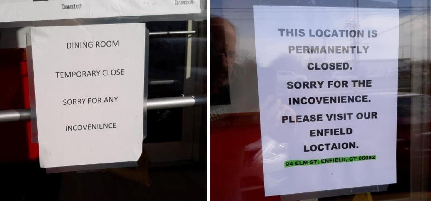 The Windsor Locks restaurant had opened a drive-thru service in 2017, and underwent extensive remodeling a year later, but the coronavirus pandemic which has caused severe restrictions on dining establishments was apparently too great a hardship to overcome.
