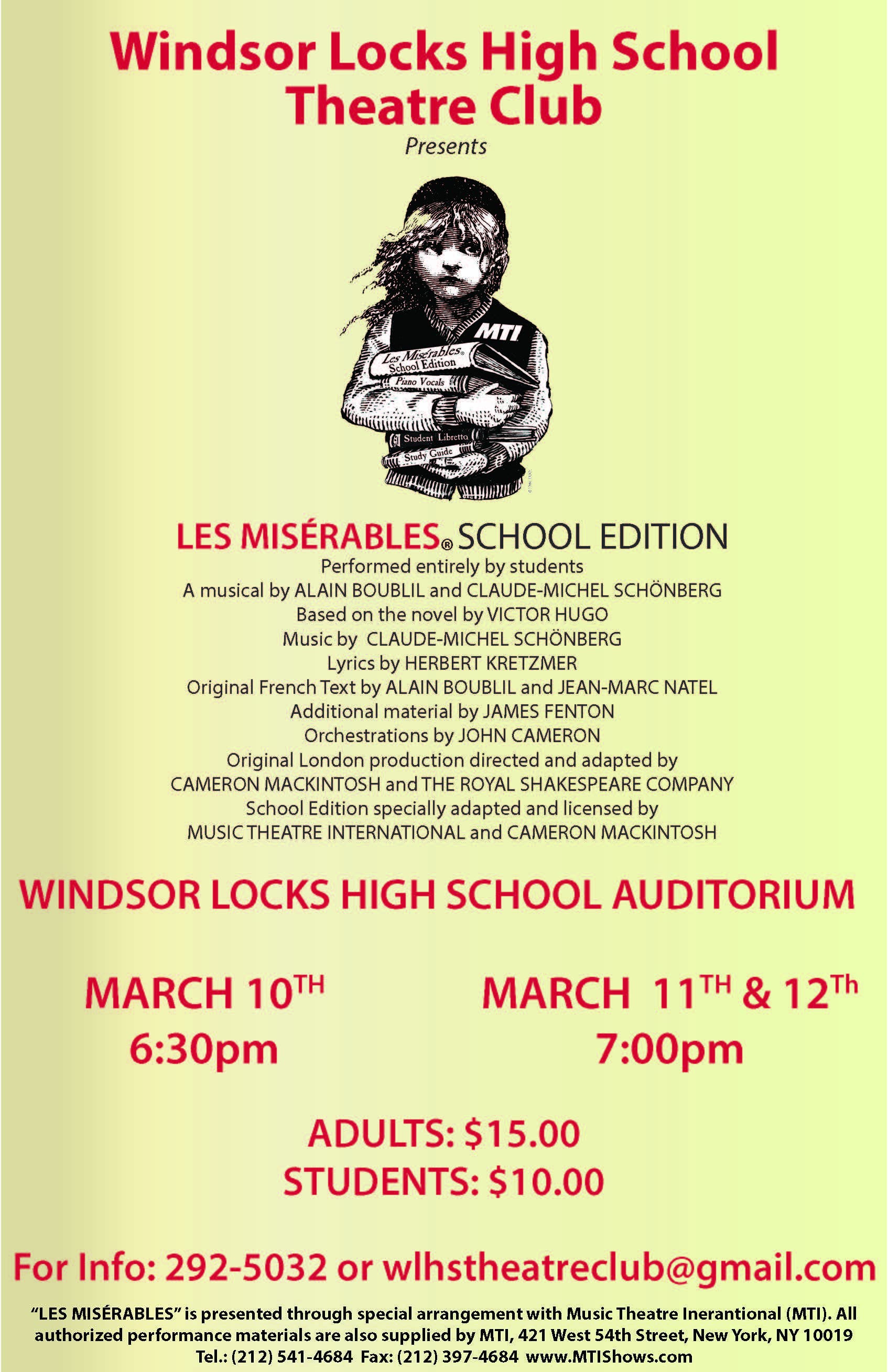 The Windsor Locks High School Theatre Club will be presenting the epic musical, "Les Miserables - School Edition".