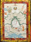 Several Asian lots sold well above estimate, including a Sino-Tibetan Qing thangka depicting a Shakyamuni Buddha teaching dharma, Qing Dynasty, pigments on fabric, measuring 32 1/4" high, 22" wide, which brought $3050 from a phone bidder; a Chinese gilt bronze Amitayus Buddha, signed on verso, sized 8" high, 4 5/8" wide, which fetched $6,700 from an internet bidder; a Khmer polished sandstone figure of goddess Uma, Angkor Wat Style, 12th century wearing a striated sarong, central sash with beading and leaf-shaped pendants, large frontal overfold covering wide belt with oblong jewels, upper arms with beaded quatrefoil armlets, chest with broad foliate ornamented collar, 19 3/4" high, 7 3/4" wide, which hammered at $2,950 to a phone bidder; a Tibetan Bronze Tara Deity, 6 7/8" high, 4 1/2" wide, selling to the internet for $2,125; a Tibetan thangka depicting a seated deity and attendants, pigments on fabric, 26” high, 18 1/4" wide, selling to an in-house absentee bidder at $3,660; a Tibetan thangka depicting Jetsun Milarepa, pigments and gilt on fabric, 28 3/4" high, 18 1/2" wide, knocked down to another internet bidder at $4,685; a Tibetan thangka depicting Green Tara, pigments and gilt on fabric, 30 1/2" high, 19 1/4" wide, also selling to a phone bidder at $3,660; and a Tibetan thangka depicting Padmasambhava, pigments and gilt on fabric, sight size 16 1/8" high, 11 1/4" wide, selling to the internet for $3,125.