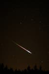 Many of these dusty comet orbits cross Earth’s orbit. When the Earth passes through a comet’s orbit, we experience a “meteor shower” as the comet’s trail of dust is pulled down through the atmosphere by Earth’s gravity. The individual grains of material — mostly the size of a pea or smaller — traveling at speeds from 25,000 to over 150,000 miles per hour, are heated by friction with the atmosphere to temperatures approaching 10,000 degrees. The meteors mostly vaporize at these temperatures, and it is the bright plasma from this vaporization that we see as a “shooting star."