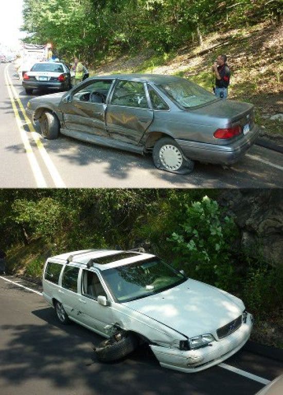 Car Hits Guardrail, Sideswipes Oncoming Vehicle