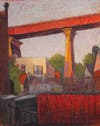 Moore is well-know in the area for her colorful, energy-charged paintings and pottery. Carol has always been drawn to the negative spaces apparent in industrial sites and street scenes and her paintings reflect this keen interest. Plein air (painting on location) landscapes and florals are also a favorite in pastel, oil, acrylic, and watercolor mixed media. Her membership to the Renaissance Artists has lead to a series of figure drawings in ink with intriguing backgrounds that can be seen at her studio in Bantam.