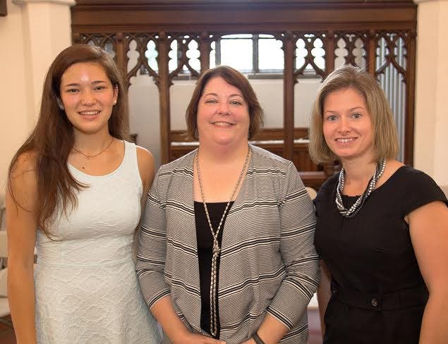 Photo Caption: Westover’s Head of School Julie Faulstich (center), along with senior speaker Nola Iwasaki (left) of Southbury, Connecticut, and faculty speaker Shelby Neal, spoke at Westover’s Convocation Service September 10.