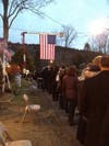 Those standing in line waiting to pay respects to the young teacher were offered warm drinks and snacks by Nonnewaug students and other young folks who, of their own accord, came to the tent at Woodbury Saw & Mower to help.